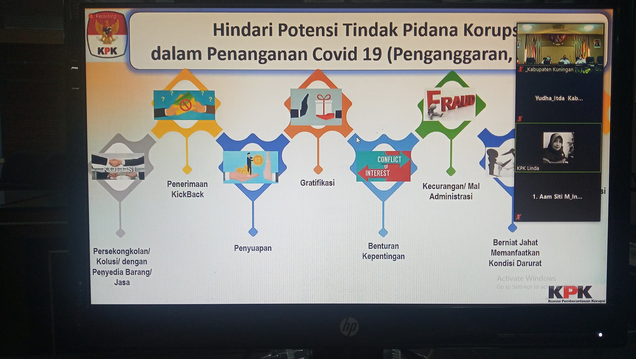 Hal itu disampaikan Fungsional Kordinasi Supervisi Pencegahan (Korsupgah) KPK RI, Dwi Aprilia Linda, saat menjadi pemateri dalam Rapat Koordinasi Pengawasan Barang dan Jasa (PBJ) Provinsi Jawa Barat, yang dilakukan secara virtual melalui zoom meeting KPK RI, Rabu (5/5/2021).